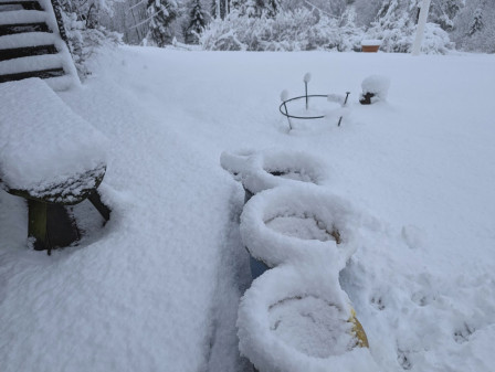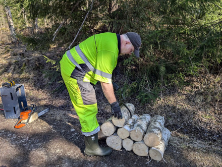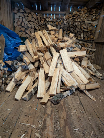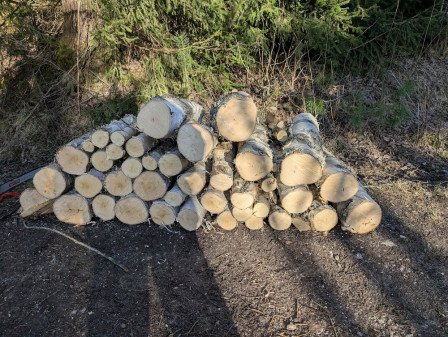Then I did some heavy duty gardening involving carrying heavy stones. Meanwhile Bjørn was being a lumberjack, cutting down two birches. They were quite big and had lots of branches so he asked me if I could clear them away. That took quite a bit of time and energy, but it was nice contributing to our firewood production.