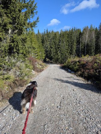 I woke up at 5am (!!!), and at 6.55 am, me and Aro were 2.5 kilometers from home. looking longingly towards Bjørkelangen.